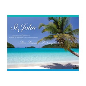 This 2026 St. John wall calendar features 12 full-color images of the island. The images included are of gorgeous beaches and scenery. It is a
