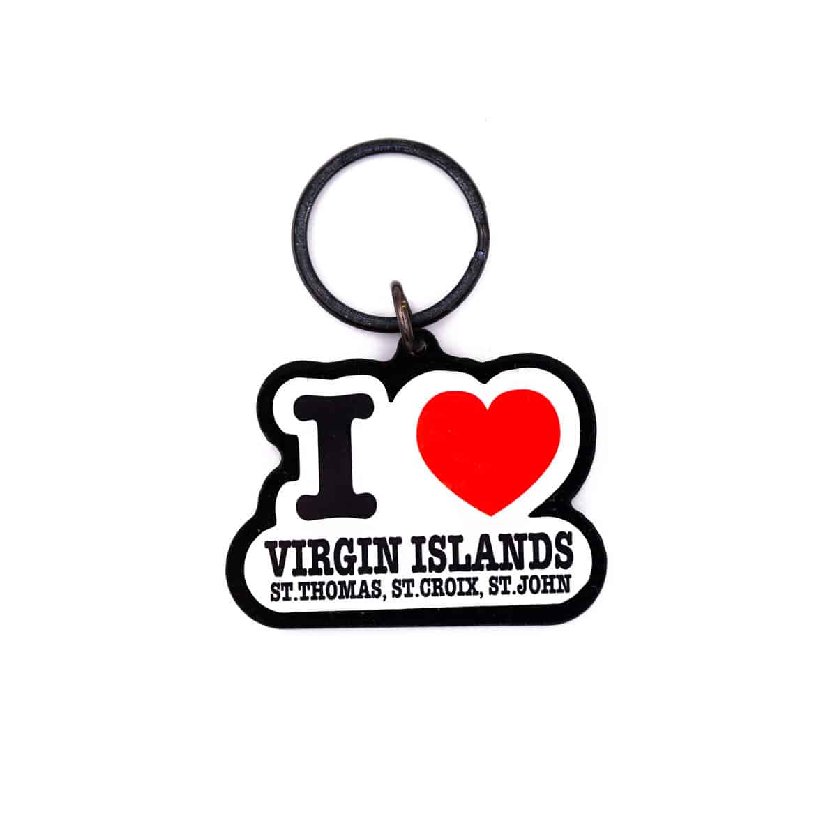 Show your love for the U.S. Virgin Islands with this great keychain. Says I heart Virgin Islands, St. Thomas, St. Croix, St. John. Size: 2 by 1.5 inches.